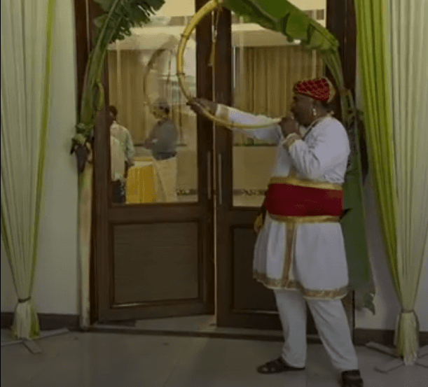 Decorated Ganesh idol at entrance