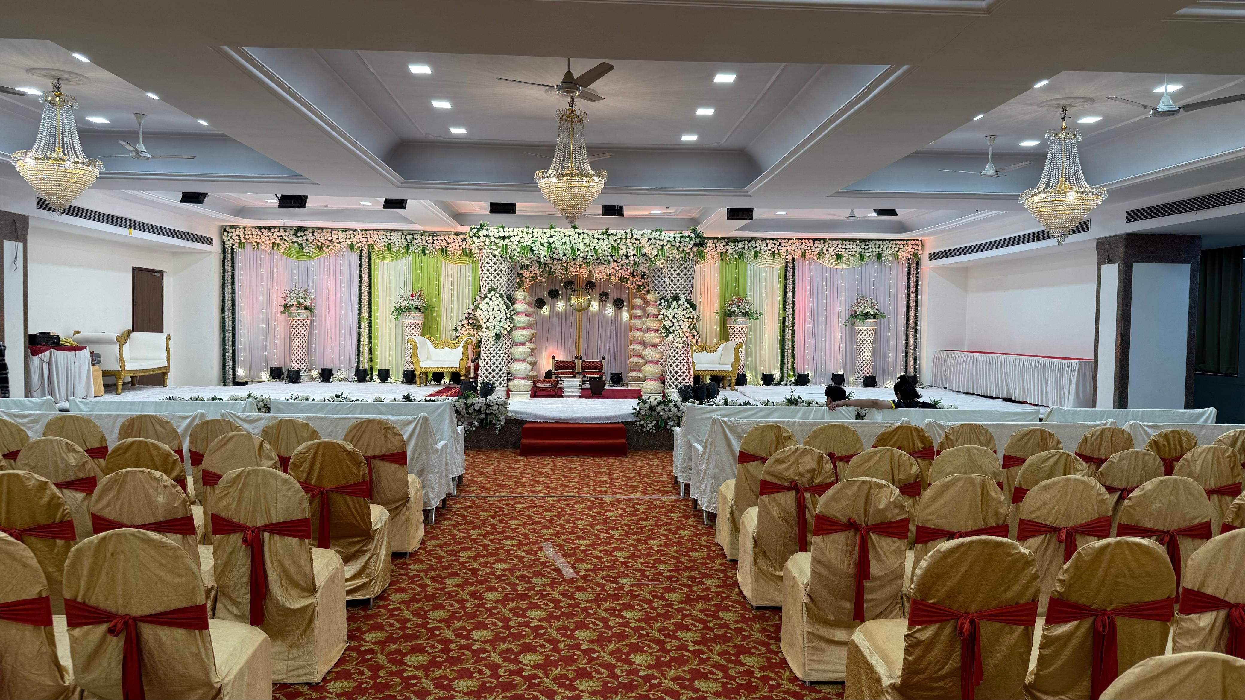 Tastefully Decorated Premium Banquet Hall. Widest Stage. Artistically Designed Green Rooms for Bride & Groom